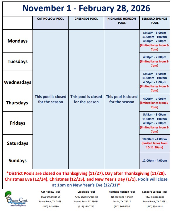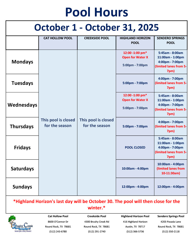 Swim Lessons & pool lane rentals will also be happening at the pools: